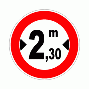 Segnale di DIVIETO DI TRANSITO A TUTTI I VEICOLI DI LARGHEZZA SUPERIORE A 2,30 METRI 1:- 03025