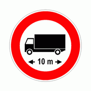 Segnale di DIVIETO DI TRANSITO A TUTTI I VEICOLI, O COMPLESSI DI VEICOLI, LUNGHI PIU’ DI 10 METRI 2:- 03027